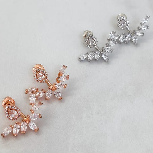 A versatile favorite among fans, these earrings provide a modern twist on the classic stud by adding a geometric floral drop that sits behind the earlobe.